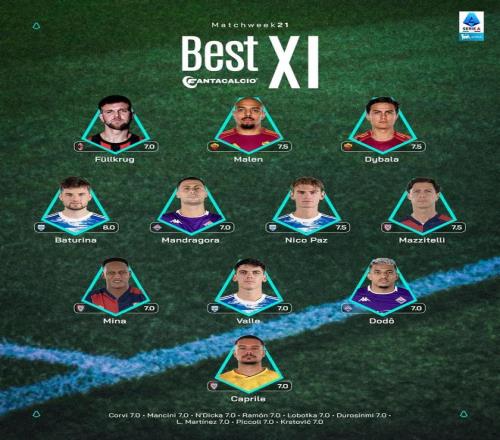 北京时间1月20日,意甲官方公布了联赛第21轮的最佳11人阵容,菲尔克鲁格、马伦、迪巴拉以及尼科-帕斯入选。